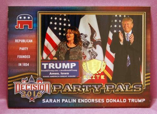 Title (ebay affiliate link): Decision 2016 Elite Insert #E5 - Sarah Palin Endorses Trump - GOLD FOIL VERSION