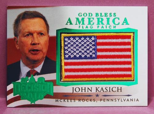 Title (ebay affiliate link): Decision 2016 John Kasich God Bless America GREEN FOIL Flag Patch Insert #GBA10