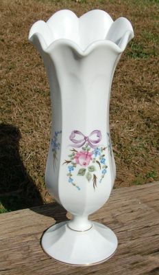 HTF Westmoreland Milk Glass Roses & Bows VASE Sgnd/Date
