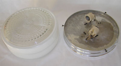 LRG. VINTAGE CEILING LIGHT MILK/CLEAR PRESSED GLASS OLD
