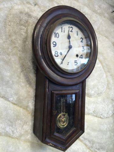 Title (ebay affiliate link): VINTAGE ANTIQUE ALARM WALL CLOCK WITH KEY AND PENDULUM