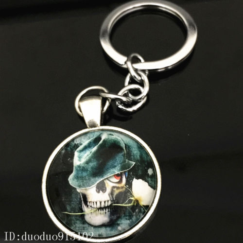 Title (ebay affiliate link): Vintage skull Keychain Cabochon Tibetan silver Glass Metal Key Ring Y45