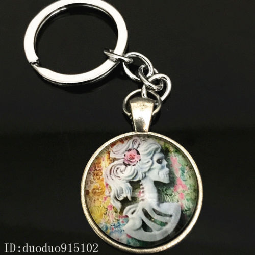 Title (ebay affiliate link): Vintage skull Keychain Cabochon Tibetan silver Glass Metal Key Ring Y44