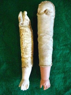 2 DEFERENT ANTIQUE DOLL ARMS WITH HANDS.