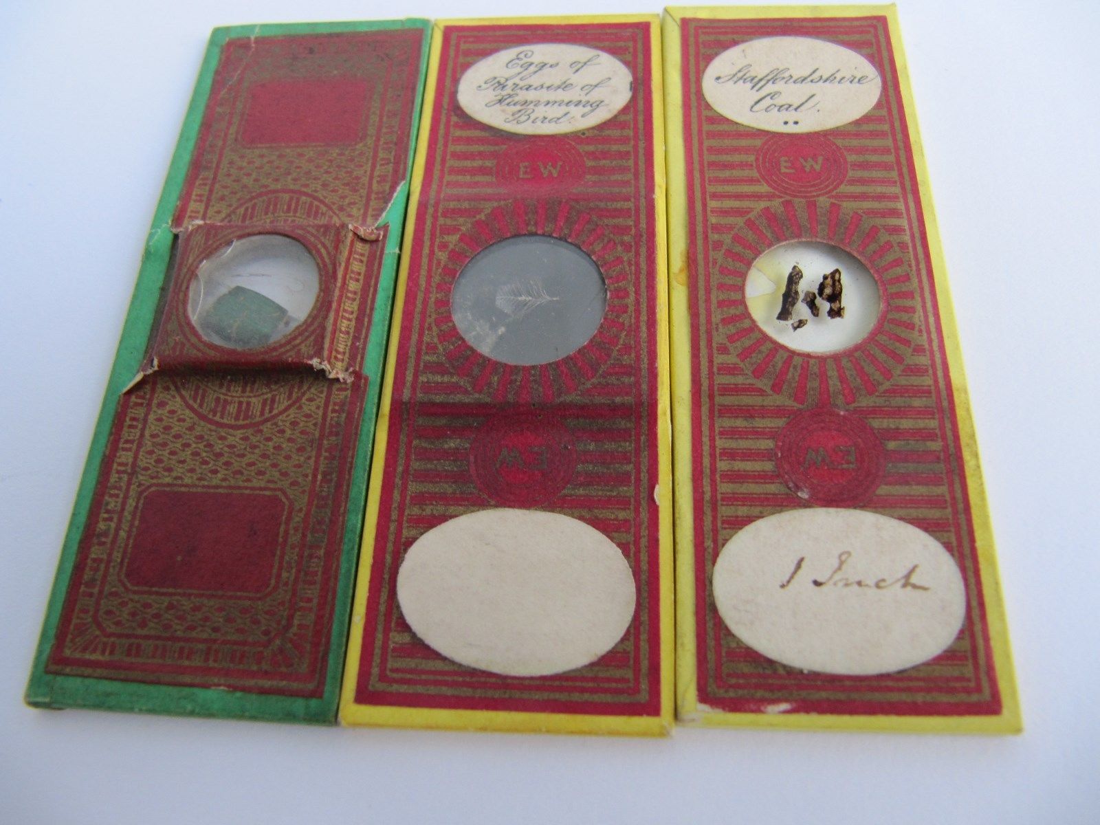 Title (ebay affiliate link): 3 Antique Microscope Specimen Slides .. E. WHEELER etc