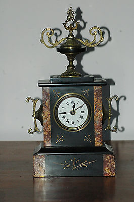 ANTIQUE FRENCH MARBLE & SLATE MANTLE CLOCK.