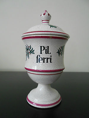 Italian Vintage Antique apothecary FAYENCE ceramic hand painted Pil. ferri jar