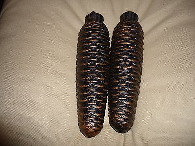 Set of 2 Antique Brass Rubbed Cast Iron Cuckoo Clock Pendulum Pine Cone Weight