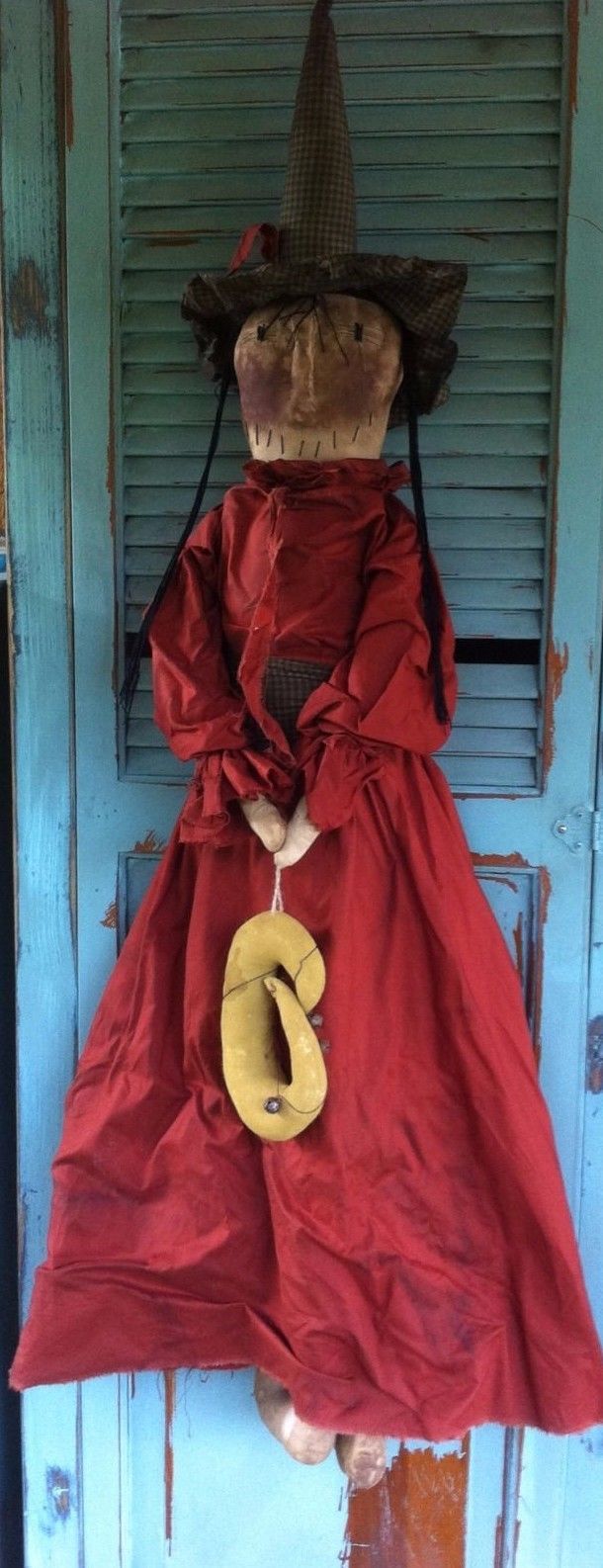 Title (ebay affiliate link): Primitive Folk ARt Witch Doll 48" with her moon orange long dress Halloween