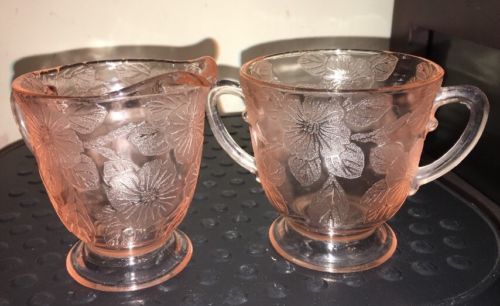 Title (ebay affiliate link): Vintage Dogwood Pink Depression Glass Creamer And Sugar Bowl Pink Glass
