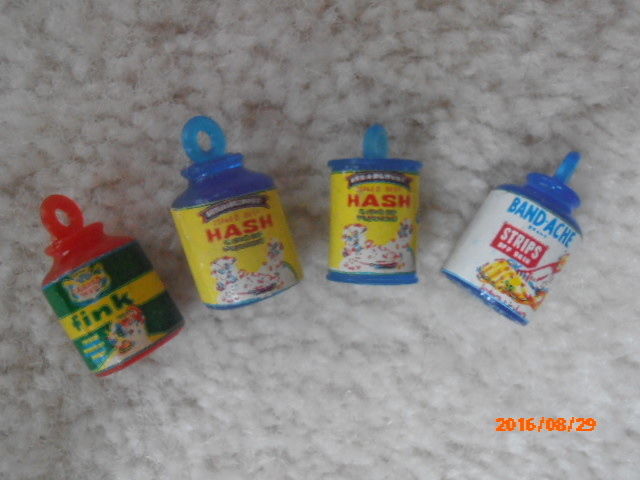 LOT OF FOUR VERY RARE 1970'S WACKY PACKAGES GUMBALL ADVERTISING TOY CHARMS