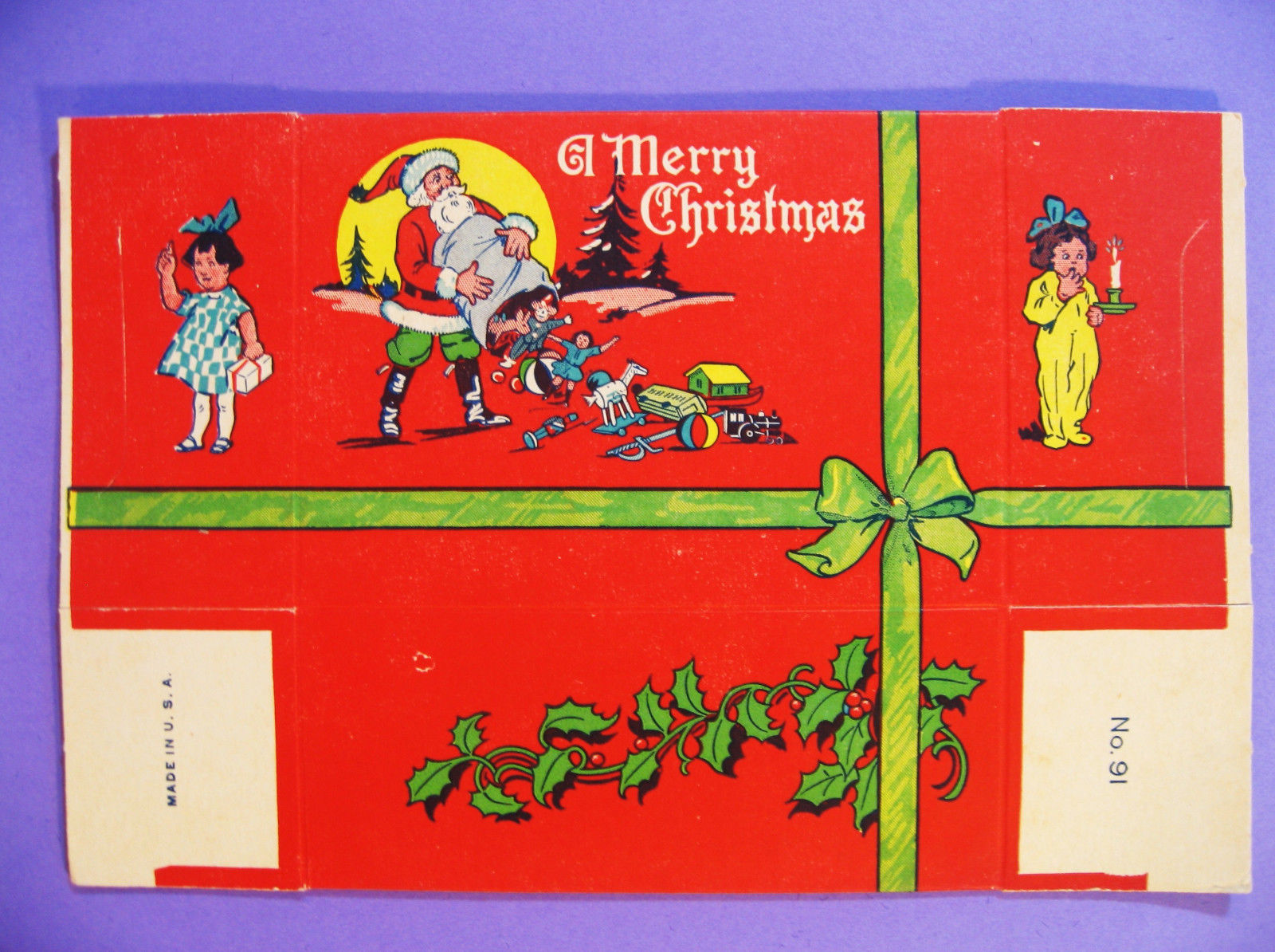 Vintage Christmas Cardboard Candy Box, Santa, Kids, Toys & Holly Sprays, Unused