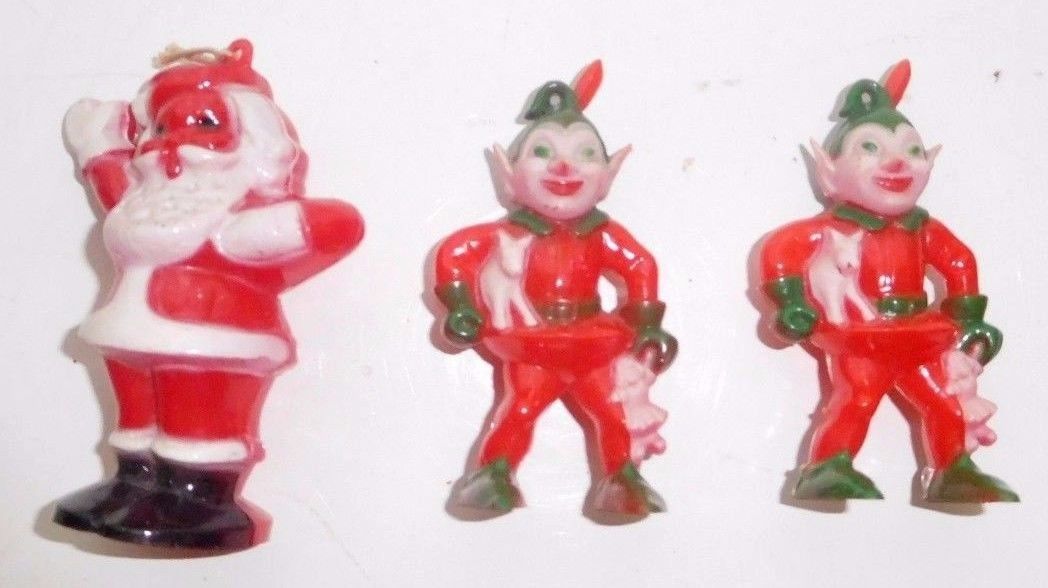 Title (ebay affiliate link): Vintage Hard Plastic Santa and Elves Christmas Ornaments