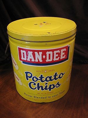 Title (ebay affiliate link): Vintage Dan-Dee Potato Chip Advertising Tin Can With Lid & Handle Cleveland Ohio
