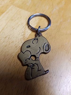 VINTAGE 1958 BRASS SNOOPY WITH HEART KEYCHAIN