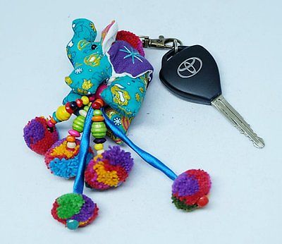 Title (ebay affiliate link): Vintage Elephant Mint KeyChain Handmade Clip Colorful Pom Pom Bells Hmong Hill