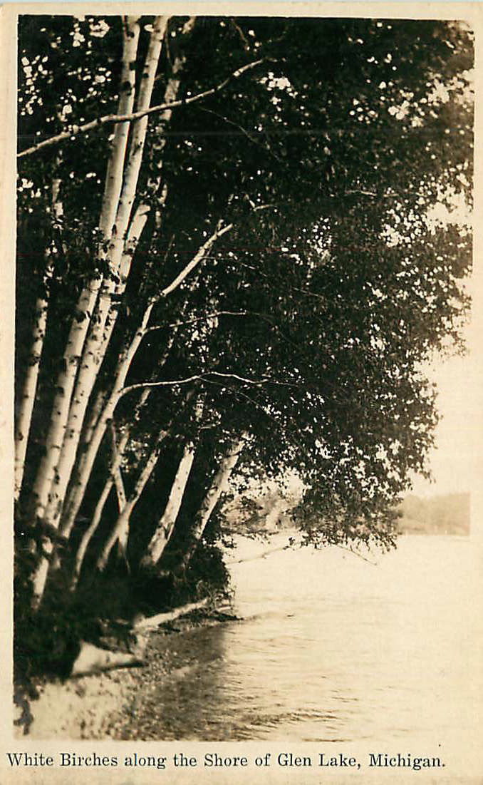 Title (ebay affiliate link): Real Photo Postcard White Birches along Shore of Glen Lake, Michigan