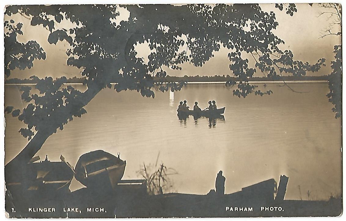 Klinger Lake Michigan MICH MI (St. Joseph County) Boating View RPPC 1909