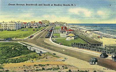 Title (ebay affiliate link): 40s Linen Bradley Beach NJ Ocean Ave Boardwalk & Beach Photo by Agreen Star Sta.