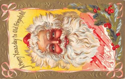 Title (ebay affiliate link): Merry Christmas Santa Portrait Holly Ribbons Antique Postcard K39399
