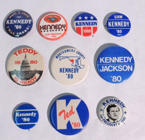 Title (ebay affiliate link): T545. VINTAGE: Lot of 10 TED KENNEDY for President Pinback Buttons c. 1980 [