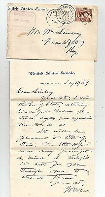 1884 US SENATE COVER, W/SENATE PM, & LETTER ON SENATE STATIONARY