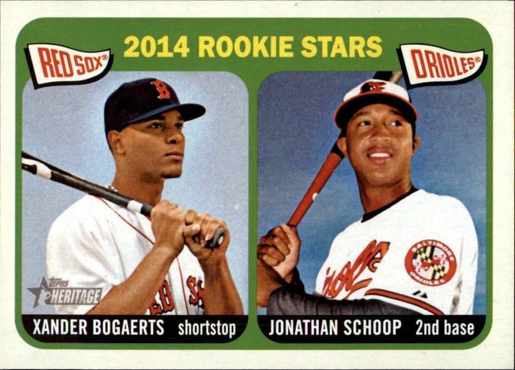Title (ebay affiliate link): 2014 Topps Heritage Xander Bogaerts/J.Schoop Rookie Mint Red Hot