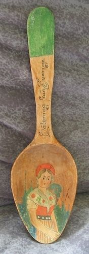 Title (ebay affiliate link): Swedish old painted WOODEN SPOONS folk costume Greetings from Sweden