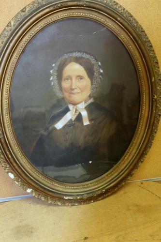 RARE MID 19TH C OIL ON PAPER PORTRAIT OF WIFE OF CONFEDERATE GEN. HENRY LITTLE