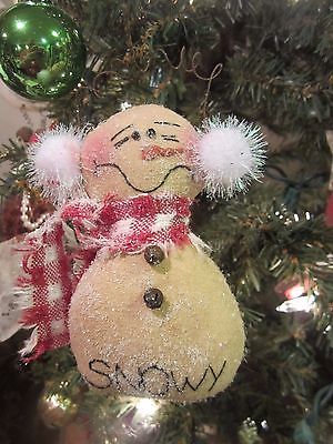 Primitive Snowman Ornie or Bowl Filler - Snowy - White Earmuffs #1115