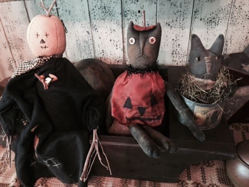 Primitive Fall Halloween Cat Lot Prim Grungy