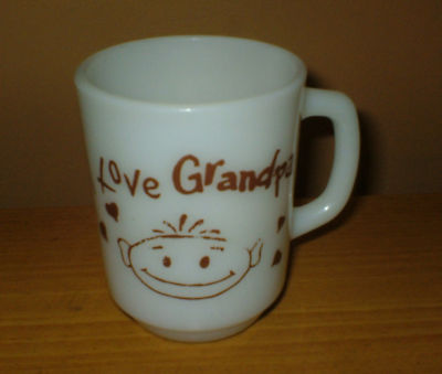 Vintage Fire King Milk Glass I Love Grandpa Smile Mug