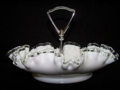 Title (ebay affiliate link): FENTON MILK GLASS 8 PT CHROME HANDLE TREAT SERVER