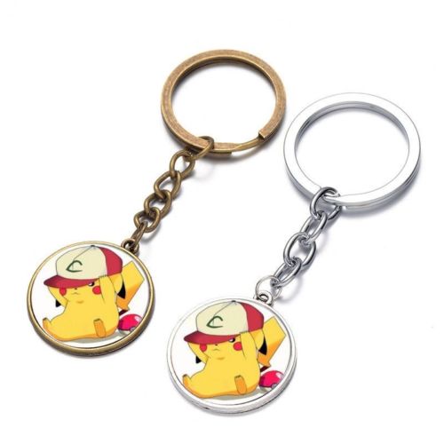 2pcs Anime Pokemon Pikachu Vintage Poke Ball Keychain Keyring Pendant Set New