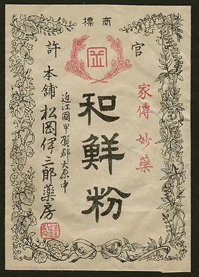 Vintage Medicine Envelope "Wasenko", Decolative framework, Revenue stamp, Japan