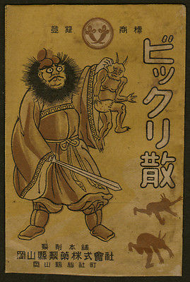 Vintage Japanese Patent Medicine Envelope "Bikkurisan", Zhong Kui, Shoki, Oni