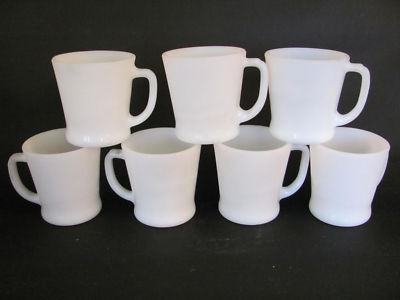 6 FIRE KING Milk Glass D Coffee Mugs Cups 70's