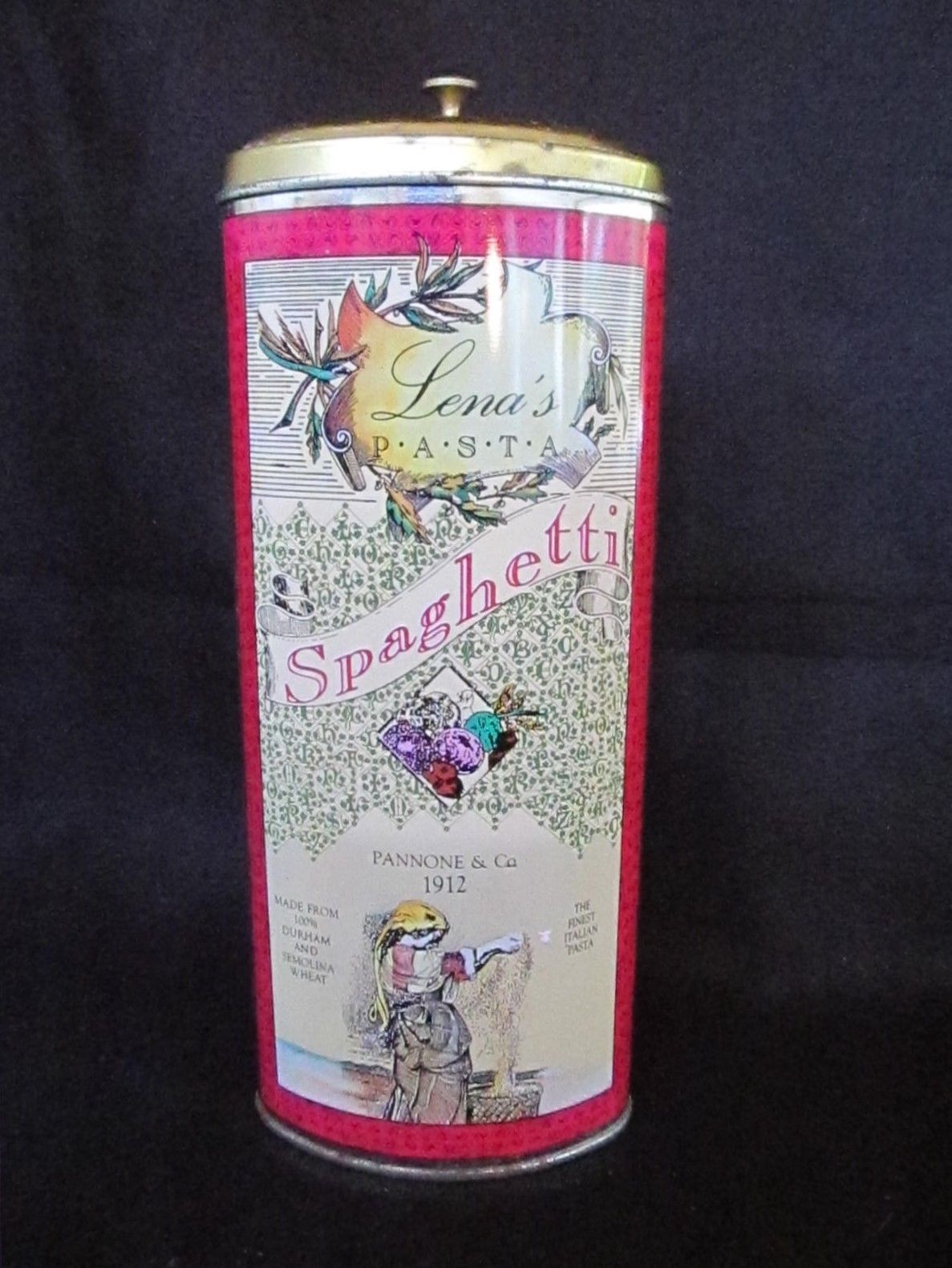 Vintage Spaghetti Tin Brass Handled Lid Red/Cream Metal Lenas Pasta Pannone & Co