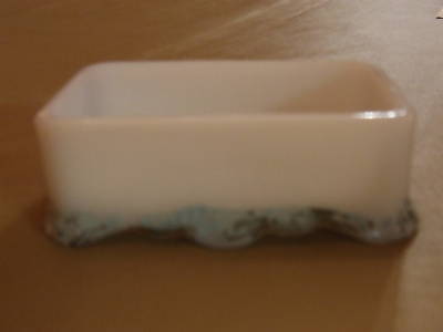 Antique Milk Glass Soap Dish with Painted edge *Old*