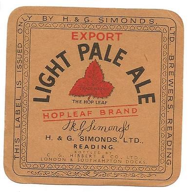 Simond's - Light Pale Ale - 1940s Label - Mint Condition.