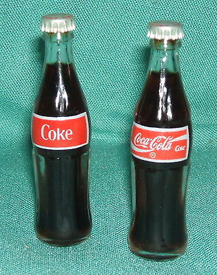Title (ebay affiliate link): 2 Miniature Coca-Cola Bottles Glass Original Full Mint Condition Coke