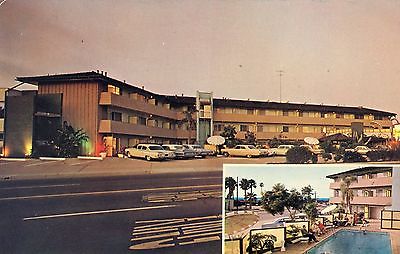 La Jolla California, 1960's postcard, La Jolla Sands Motor Lodge, lots of cars