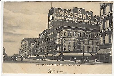 Title (ebay affiliate link): Indianapolis IN Washington Street Scene Buildings Signs PM 1906 Vintage Postcard