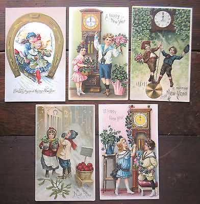 5 Vintage New Years Postcards , Most Early 1900's, Lot 3