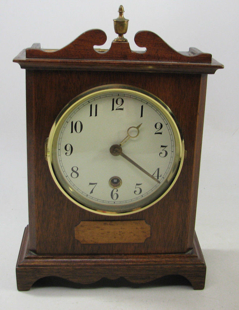 ANTIQUE WALNUT INLAID SHELF PARLOR CLOCK