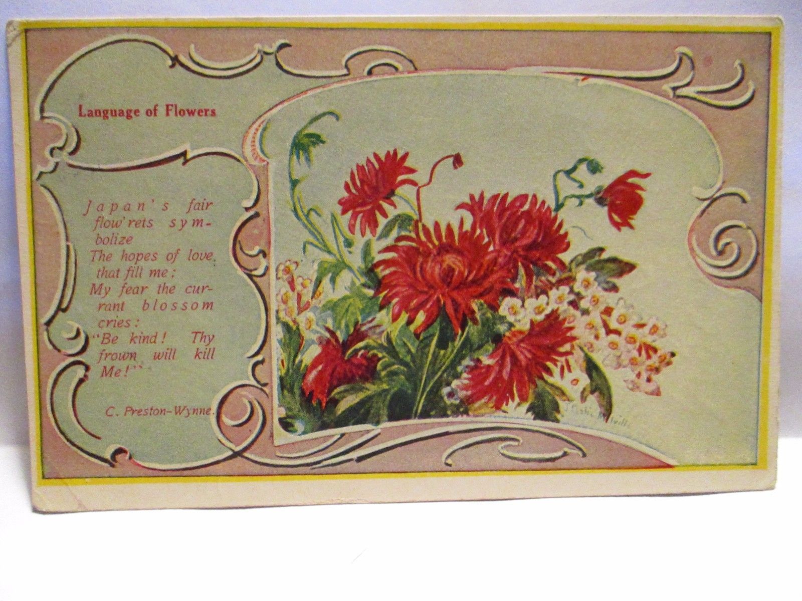 Title (ebay affiliate link): 1910 ARTIST SIGNED POSTCARD POEM " LANGUAGE OF FLOWERS " C PRESTON-WYNNE