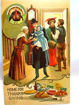 Title (ebay affiliate link): 1910 POSTCARD HOME FOR THANKSGIVING, FAMILY ARRIVING, TURKEY
