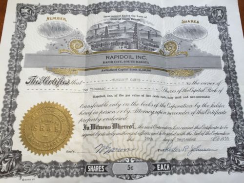 Collectors Railroad Stock Certificate