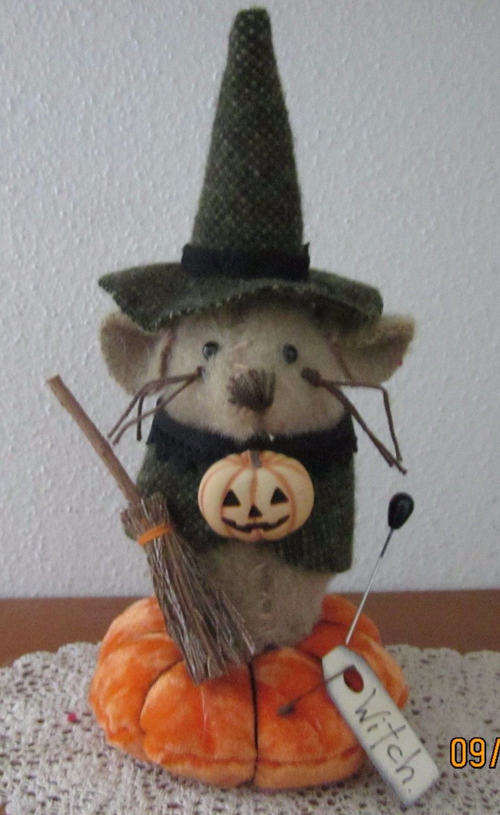 Title (ebay affiliate link): PRIMITIVE WOOL HALLOWEEN MOUSE WITCH PUMPKIN BROOM PIN CUSHION PFATT EHAG