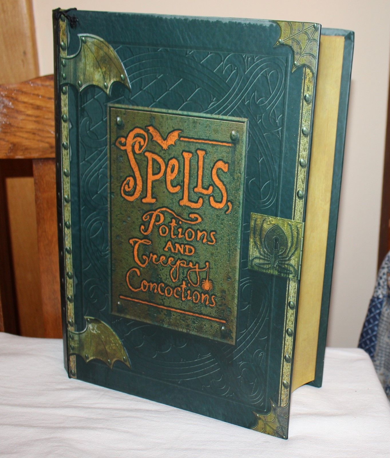 Title (ebay affiliate link): Halloween Spell Book, Candy Container. Speaks when opened. Hallmark. Really cool